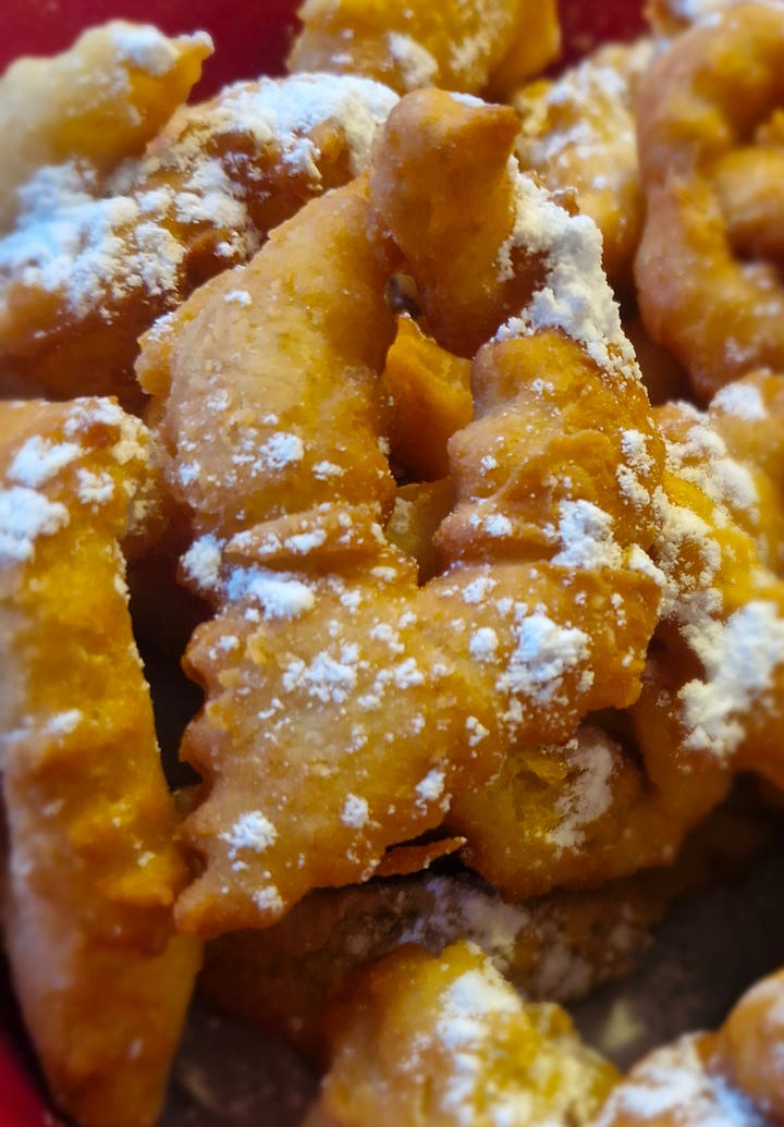 Faire chauffer l’huile à 170 °C. Plonger les bugnes par petites quantités et cuire environ 1 minute par face jusqu’à ce qu’elles soient bien dorées.